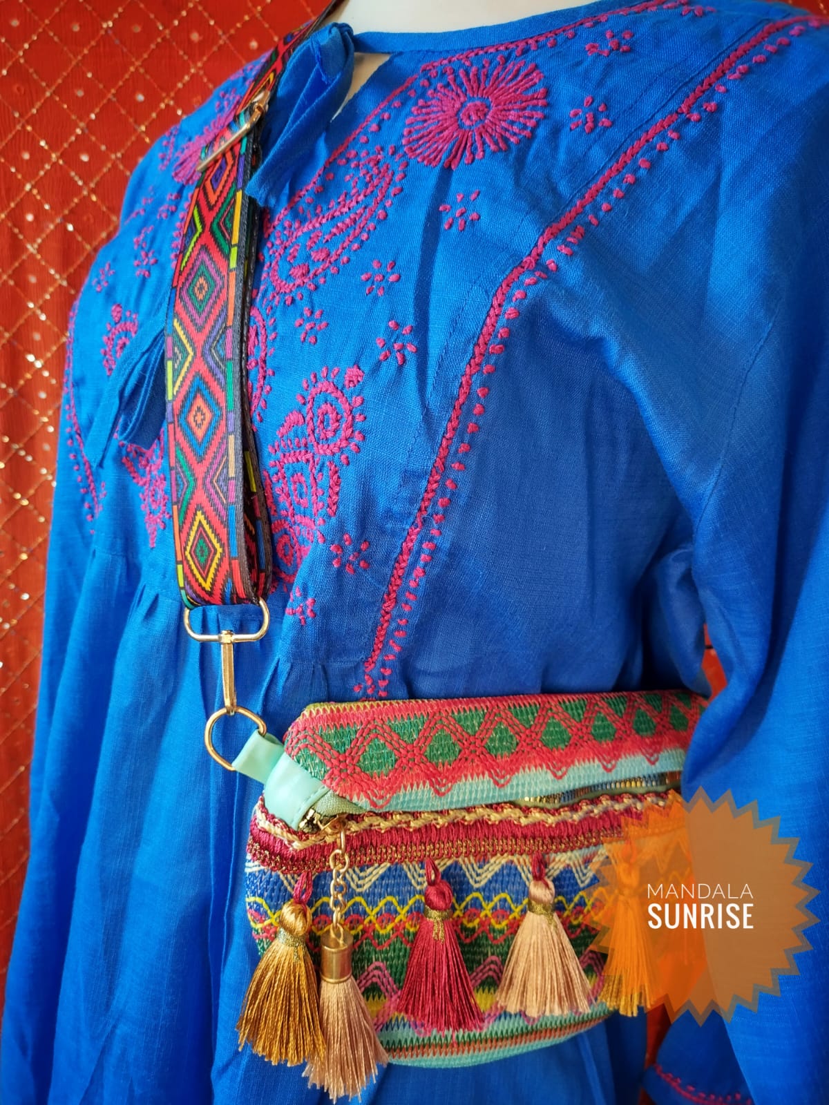 Fabulous festival bag with hugely adjustable strap from a bum bag to a cross body bag.