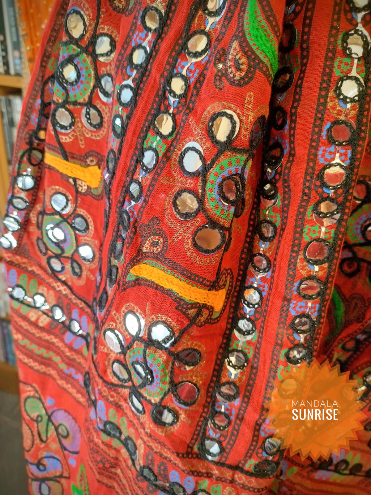 Beautifully embellishments with mirrors and embroidery. Wear as a scarf or shawl . Or decorate a boring area and give it colour