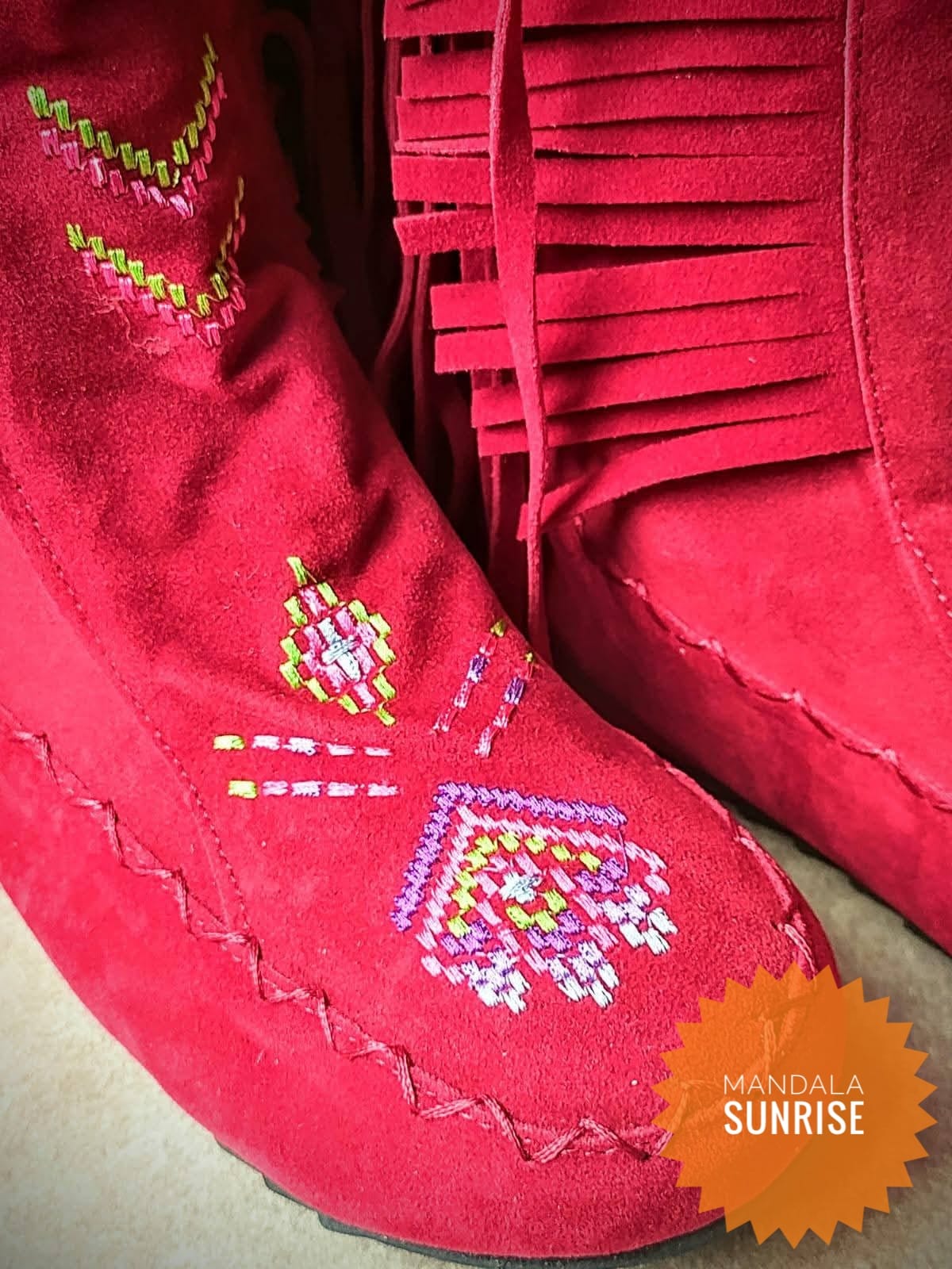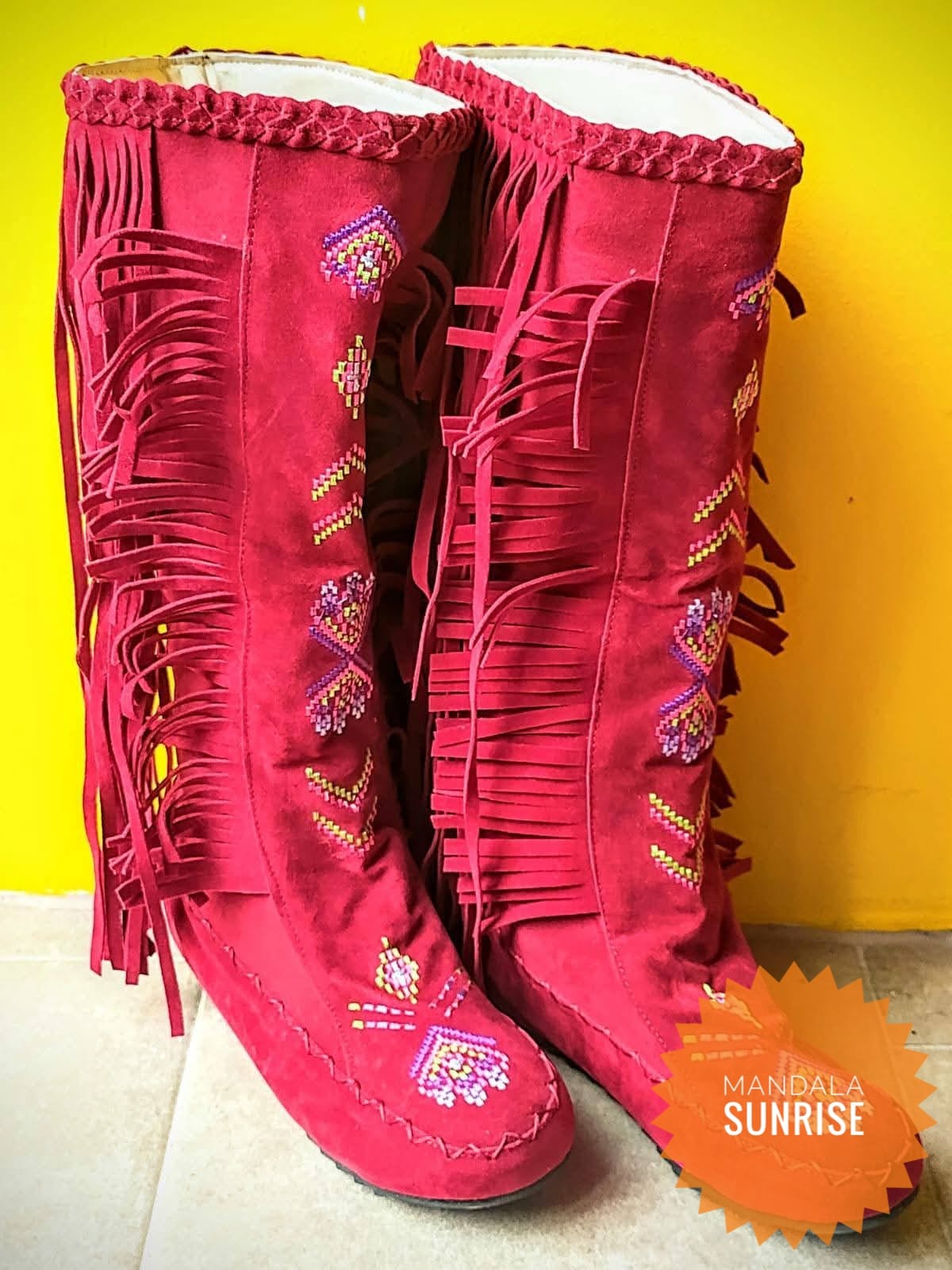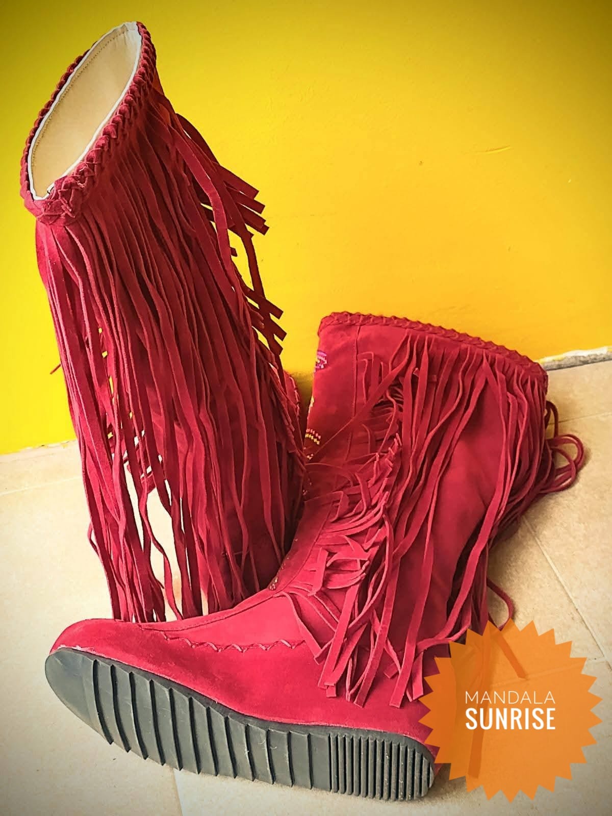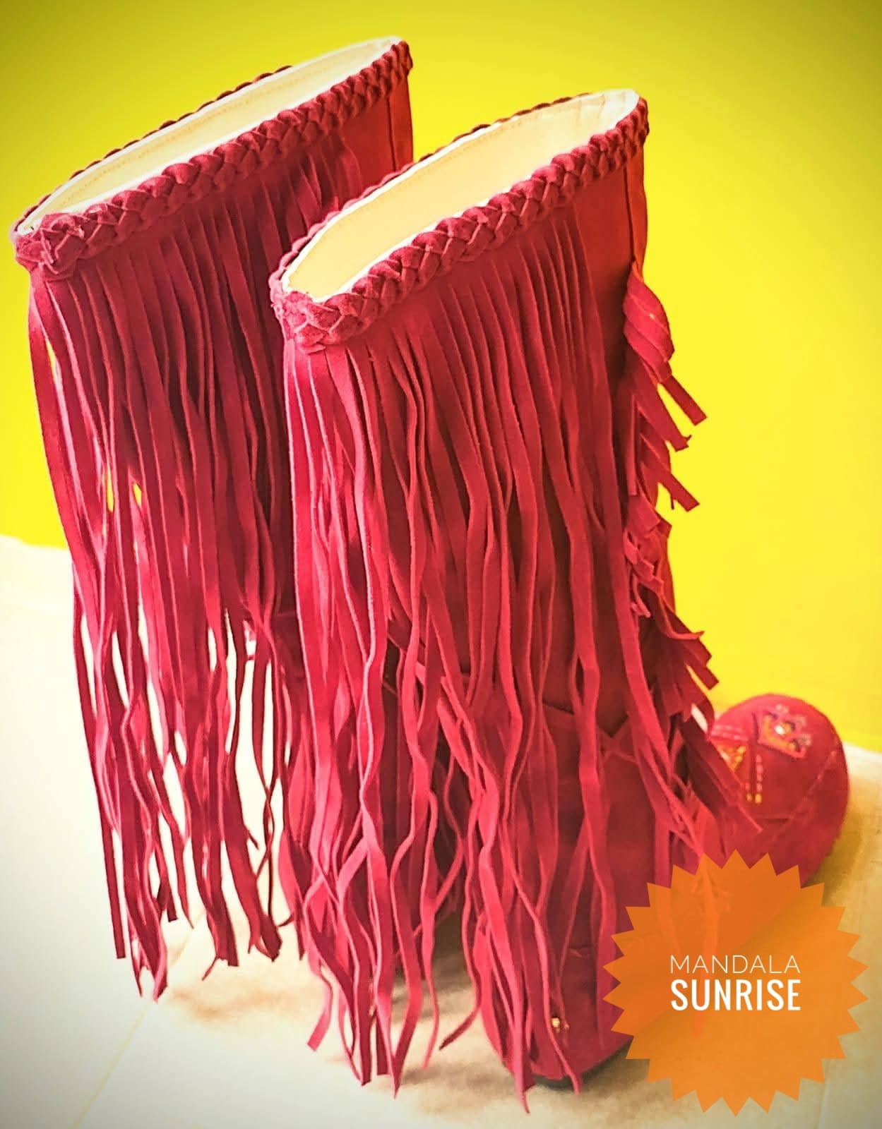 Gorgeous red suede fringed boots with beads. Size 7 but more like a 6