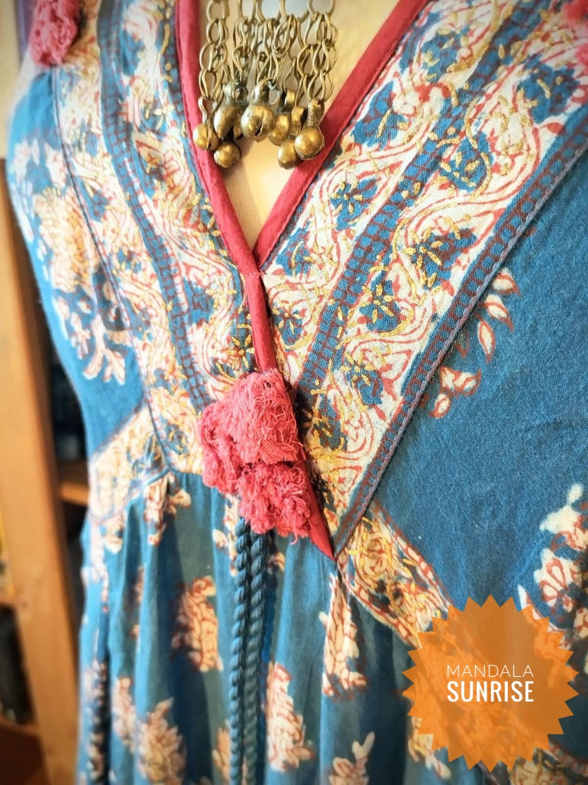 East Indian wood blocked dress with side zip to give a perfect flattering fit. Very reminiscent of the 70's