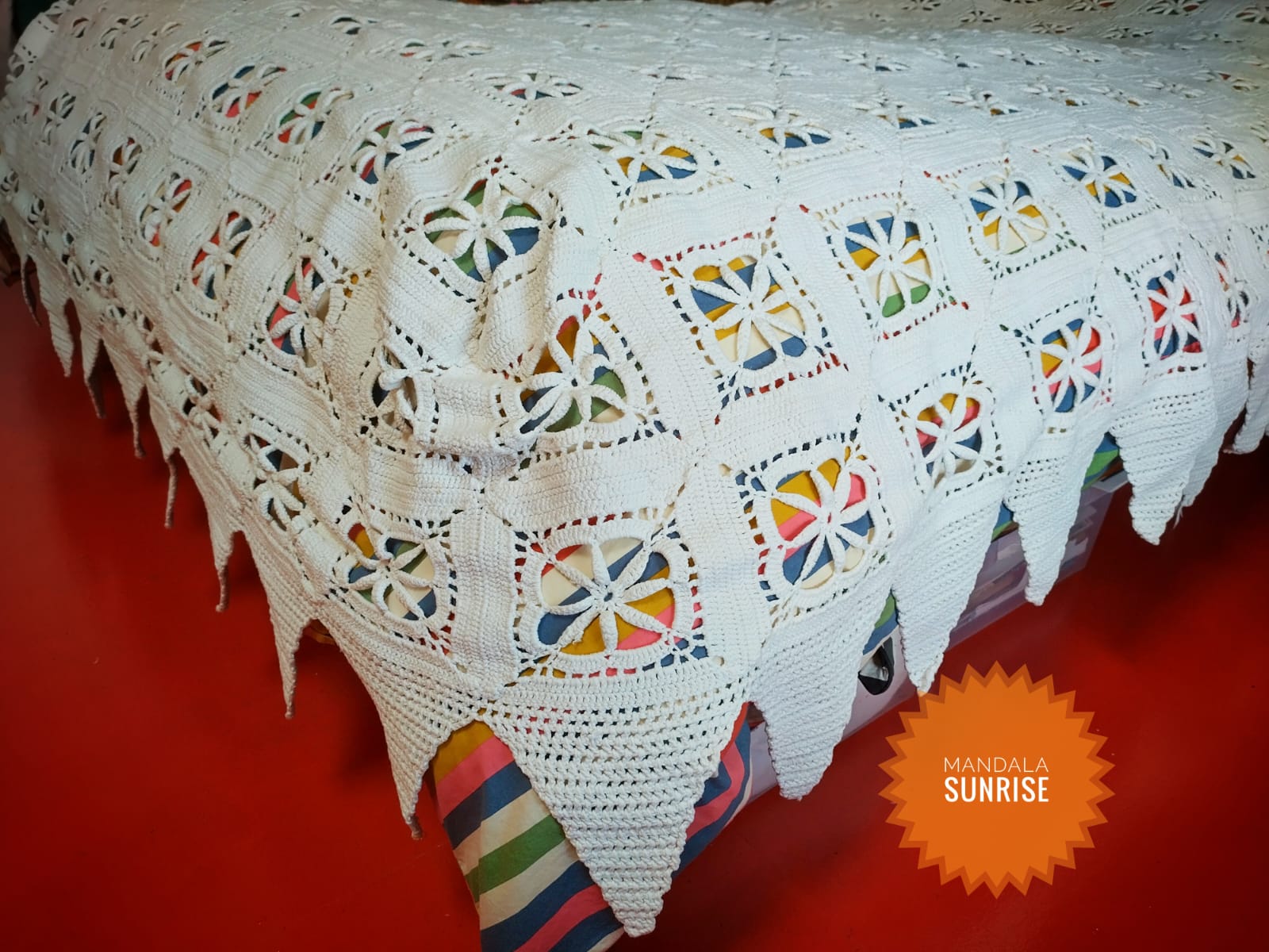 Vintage 1970's crochet cotton double bedspread or could be used on a single bed or sofa. It has a good weight to it